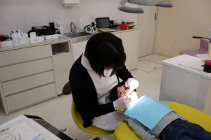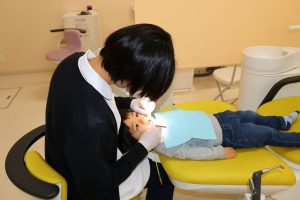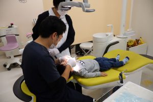 初めての臨床でも、子どもたちに優しく寄り添いながら丁寧に処置を進めています。