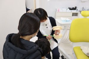 小児の患者さんへの対応や、歯みがき指導の場面など、学生たちが真剣な表情で臨床に向き合う姿がとても印象的でした。