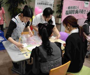 令和7年11月9日(日)、北九州市男女共同参画センターにて開催された第20回「いいな、いい歯」フェア(主催:小倉歯科医師会、小倉北区すこやかライフ推進協議会)に、本学院も参加いたしました。当日は「お口に関する体験・イベント」コーナーで、学院ブースを出展し、「歯ブラシデコ」や「ブラッシング体験」を通じて、来場者の皆さまと楽しく交流することができました。